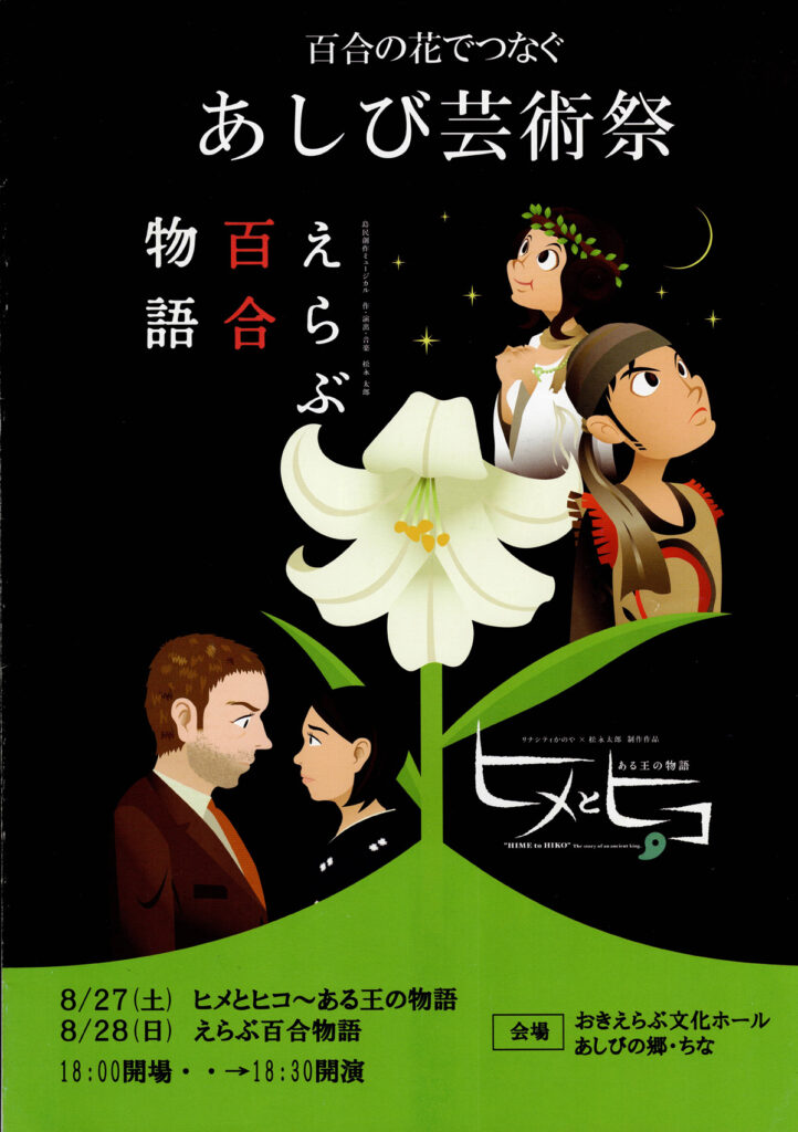 2011年 第2回公演 あしび芸術祭にて 2026年1月11日 最終更新日時 : 2026年1月13日 nagano 鹿屋市の高校生ミュージカル「ヒメとヒコ」との同時開催 2011_02leafletダウンロード